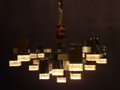 幾何学的な造形の照明が多く、レンズガラスやクリスタルガラスを組み合わせることで有機的な雰囲気を